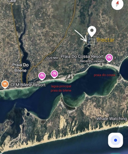 Trespasso DUAT propriedade composta de 2x parcelas, lado a lado, totalizando *1HECTAR NA NOBRE ZONA \"MIAMI DA PRAIA BILENE\" TSOVECA, PRAIA DO COSSA. ESTRADA EM BOAS CONDICOES. AS PARCELAS ESTAO COLADAS E TEM ACESSO FRONTAL DIRECTO A LAGOA DA \"MARCELINA\". TEM VISTAS ESPECTACULARES.*